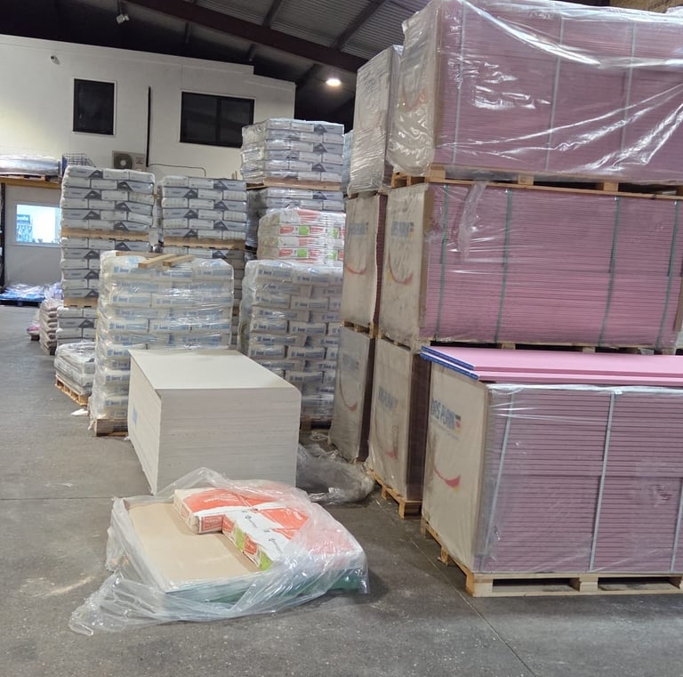 Wide range of durable supplies including cement, steel, and timber.